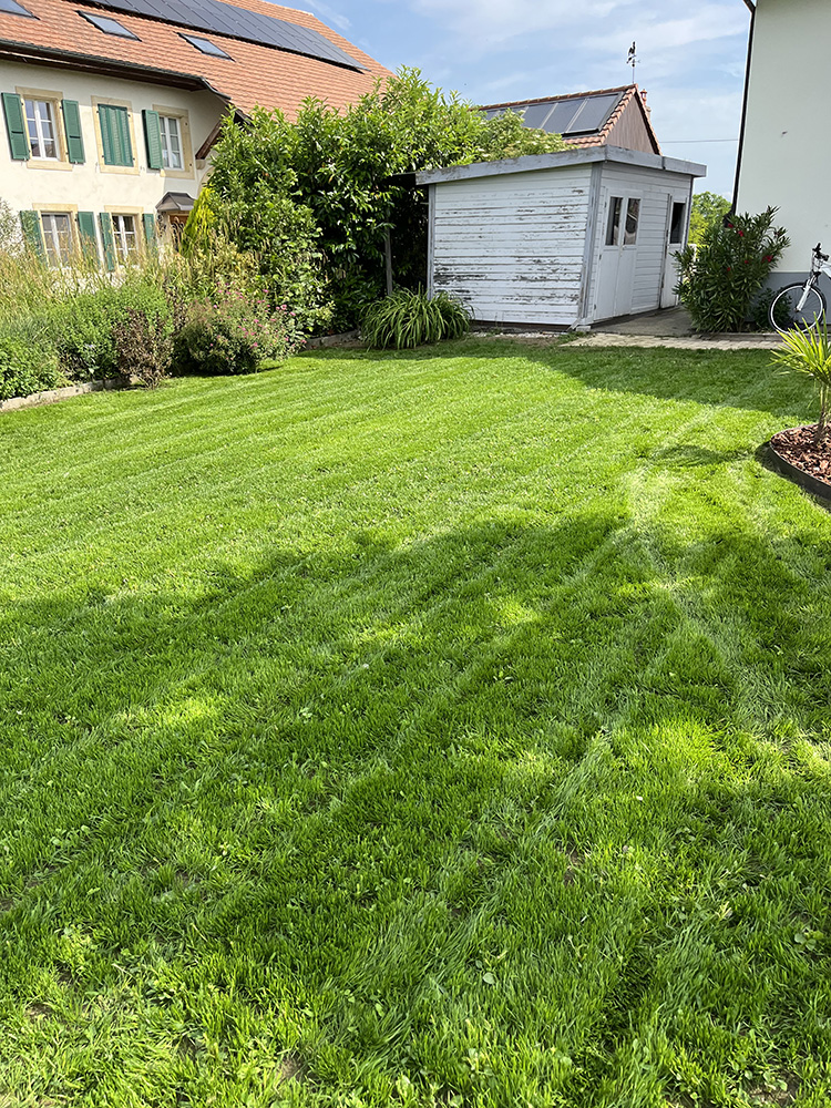 Nous assurons la tonte, le ramassage et la finition des bordures pour un rendu soigné.